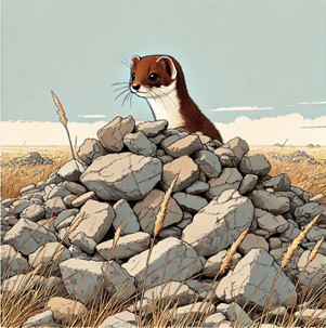 Cuando el fresco se adueña de la campiña, sobresaliendo nerviosamente de los recovecos del roquedal, no será difícil descubrir la cabeza de una ágil comadreja. Este mustélido contribuirá también a la regulación poblacional de ratones del entorno.En lo más frío del invierno, posado sobre la piedra cimera, aguantará la helada, estoico, un esmerejón. Este aguerrido halconcillo empleará este punto a modo de atalaya desde la que lanzarse en raudas persecuciones sobre los aláudidos, pegándose a su cola como un pequeño caza spitfire. La presencia de este vigilante alejará de los paneles a los bandos de estorninos en invernada que, de otro modo, llenarían las placas de deyecciones al usarlas de posadero, provocando puntos calientes. Cuando no exista un punto próximo más alto, los propios halcones peregrinos utilizarán también el montículo de piedras como lugar de reposo a su paso en pos de los bandos de aves migratorias.